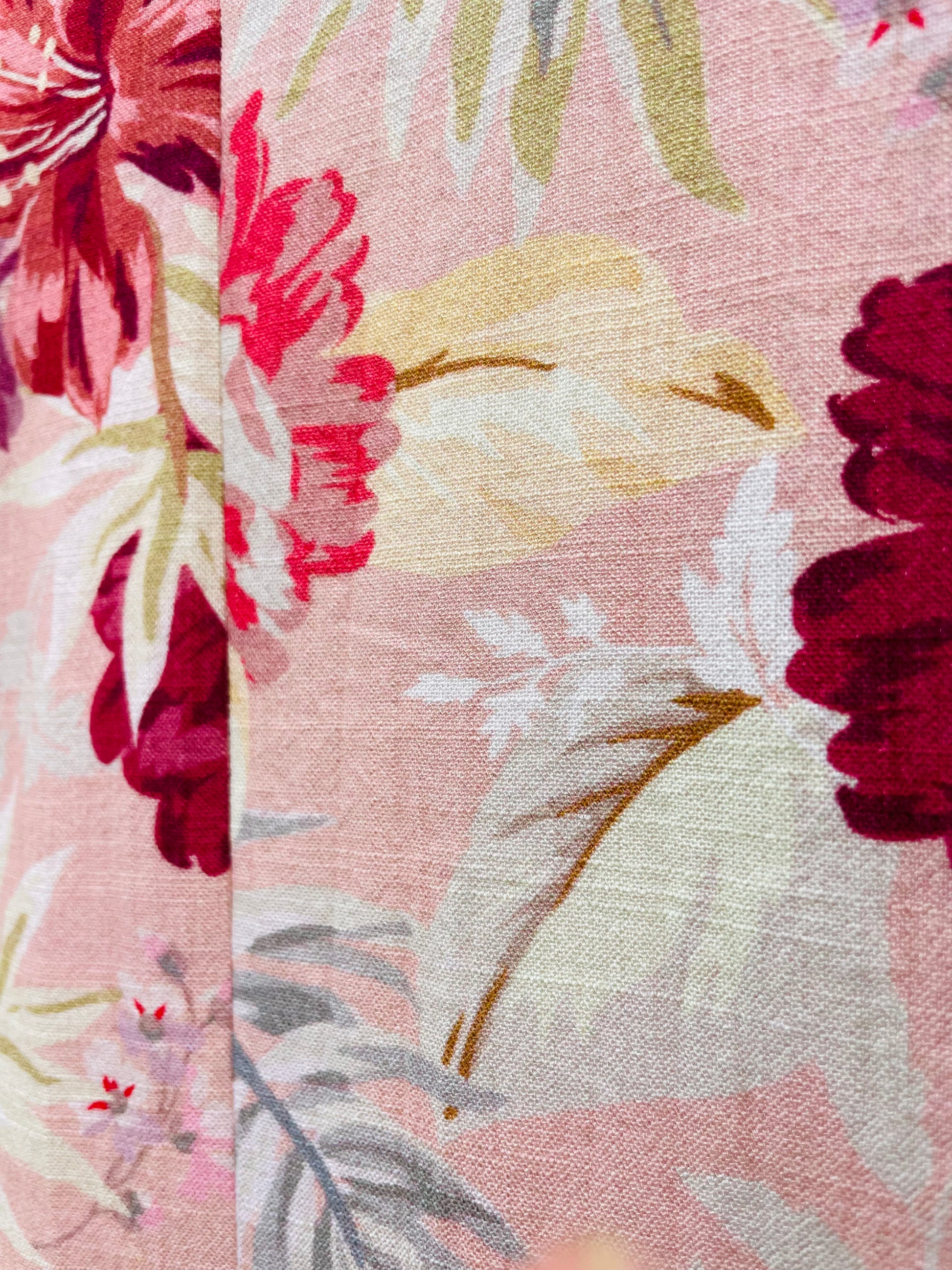Bold, Botanical Print – Vibrant pink & red florals on a soft pastel base